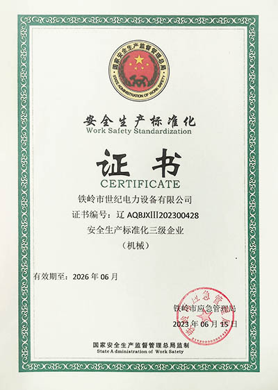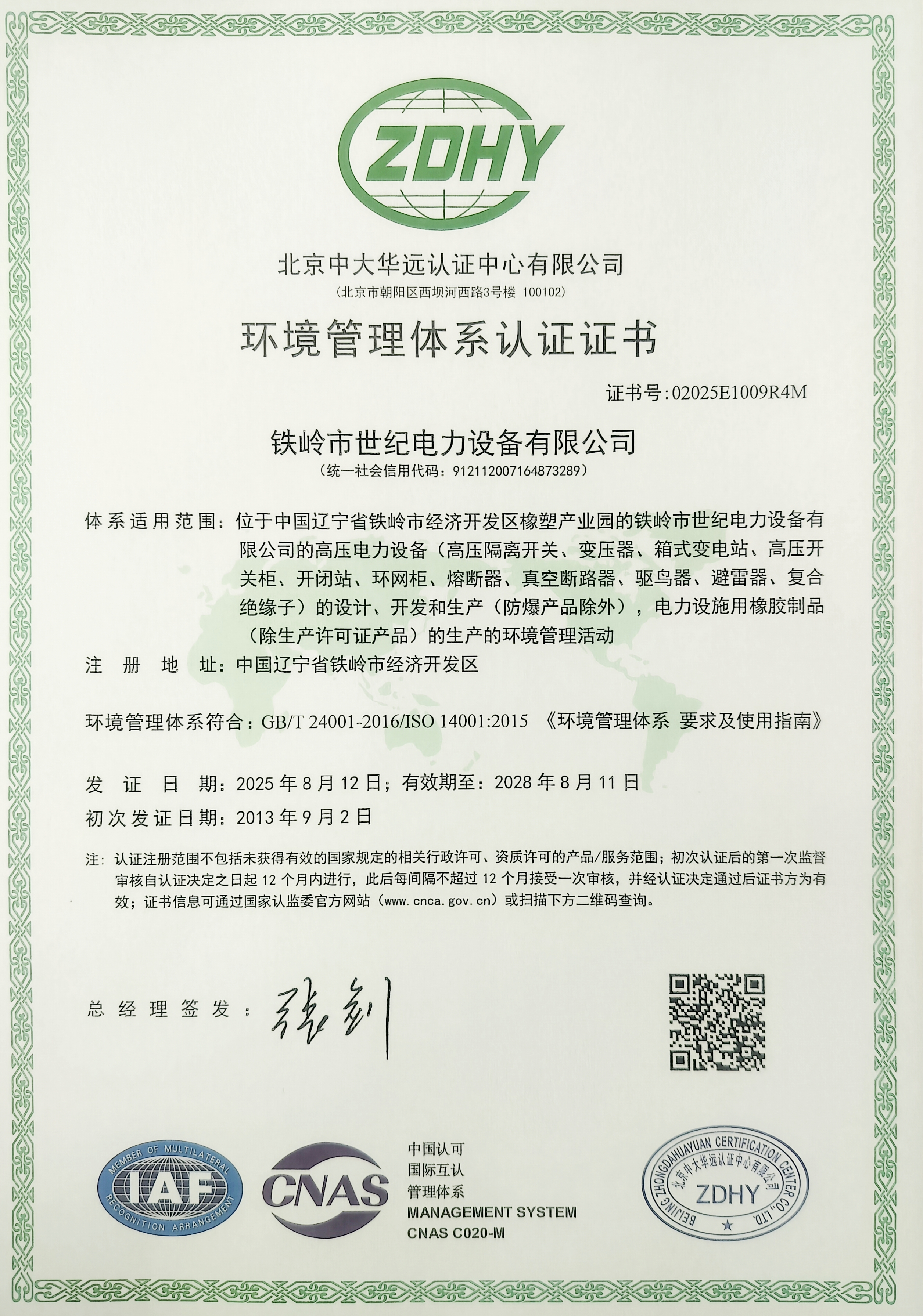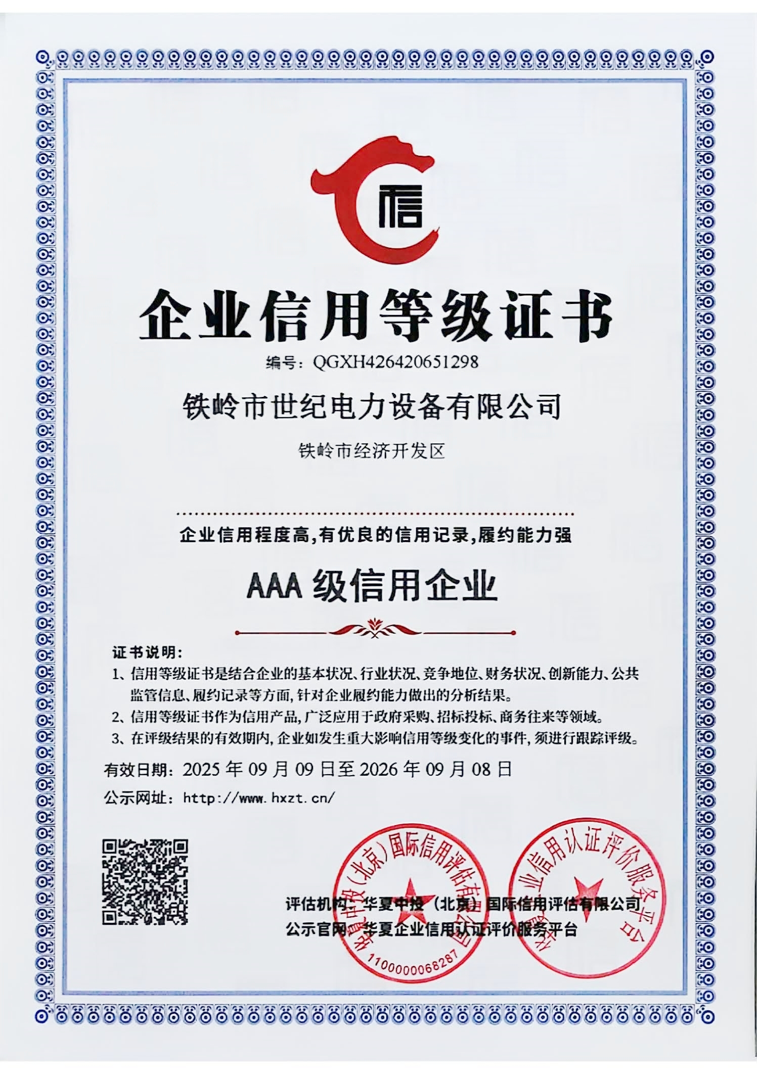 鐵嶺市世紀電力設備有限公司是集科研開發(fā)、生產(chǎn)制造、用戶服務于一體的國家高新技術企業(yè),始建于1999年,位于鐵嶺經(jīng)濟開發(fā)區(qū),占地面積5萬余平方米,建筑面積2萬余平方米。主要從事國家電網(wǎng)配套戶外高低壓隔離開關、電力電纜、變壓器成套裝置、高低壓開關柜、箱式變電站、絕緣子等產(chǎn)品的研發(fā)、生產(chǎn)和銷售。公司現(xiàn)有國家發(fā)明專利6項、實用新型專利9項,公司通過了ISO9001國際質量管理體系認證、ISO14001環(huán)境管理體系認證和ISO 45001職業(yè)健康安全體系認證。
